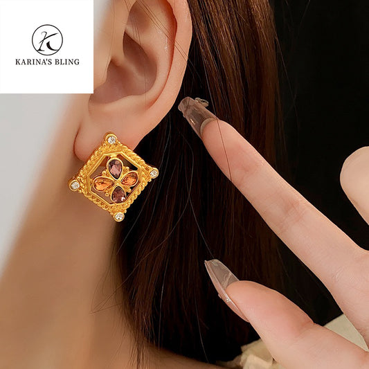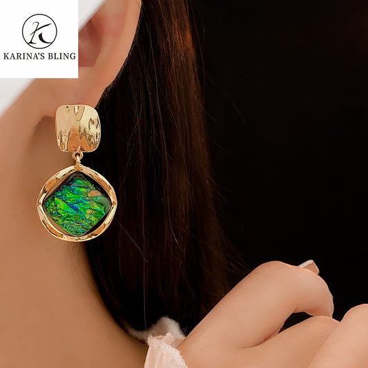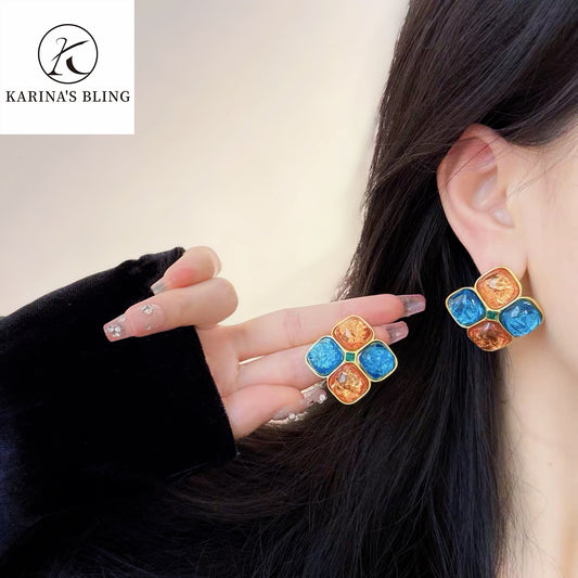 Karina's Bling Rhombus Resin earrings with Silver Needle Anti-allergy Alloy Exaggerate Jewelry.