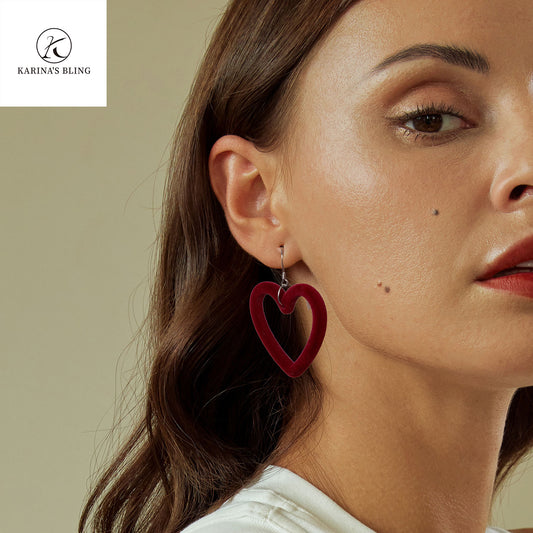 Karina's Bling Velvet Heart-shaped Earrings with Gold Plated 925 Sterling Silver Ear Hooks.
