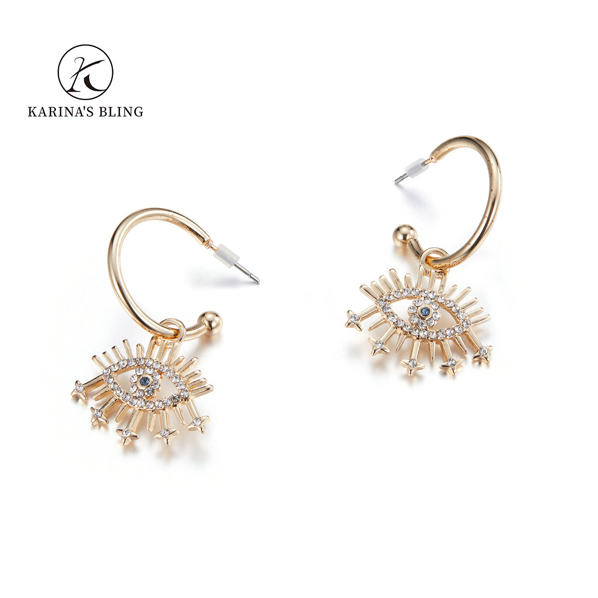 Karina's Bling Devil's Eye Earrings Fashionable Abstract Eye Crystal Rhinestone Exaggerate Jewelry.