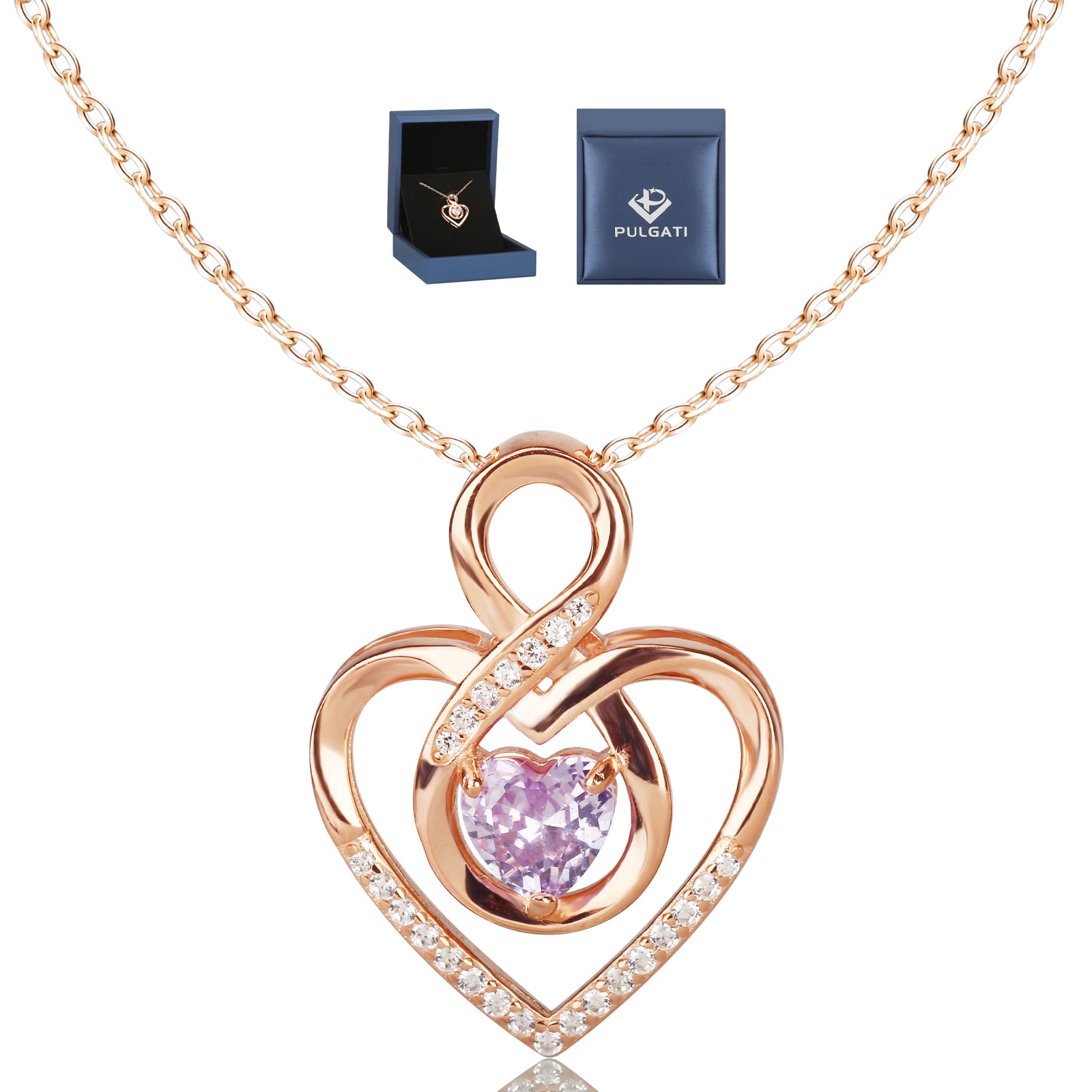 ❤️ Intertwined heart set with a halo of 24 cubic zirconia gems and a purple heart cubic zirconia in the middle represent elegence. More than fashion, it's about how you feel, to lift your mood and let you feel exceptionally beautiful. Wear this sterling silver infinity necklace for women alone for understated, minimal elegance or layer it with other necklaces for a bold, contemporary look.