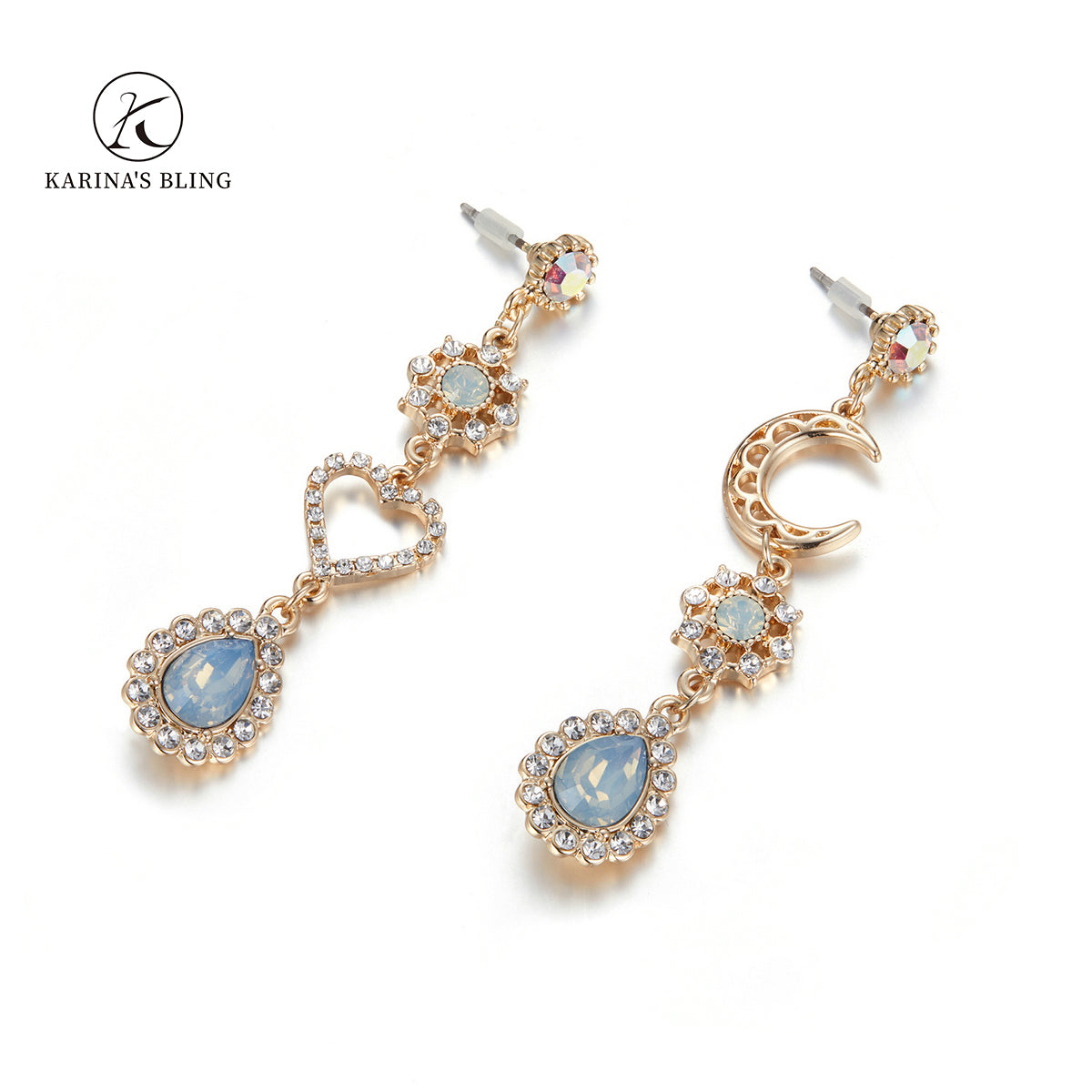 Karina's Bling Water Drop Crystal Earrings Moon and Star Exaggerate Jewelry.