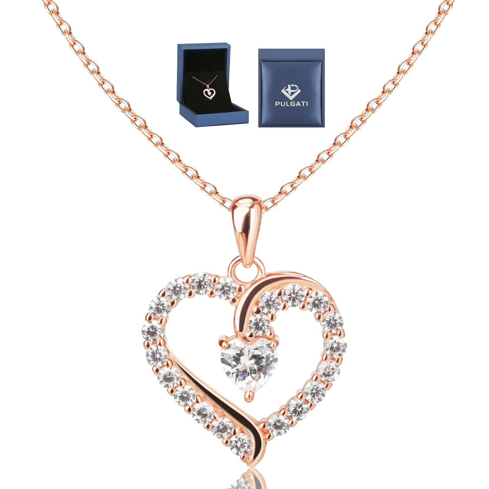 ❤️ Our Heart Shape pendant sparkles as it sits in a halo of 21 cubic zirconia gems and a heart cubic zirconia in the heart. Simple yet elegant, it is a classic necklace for every woman! Available in rose gold, white gold and yellow gold.